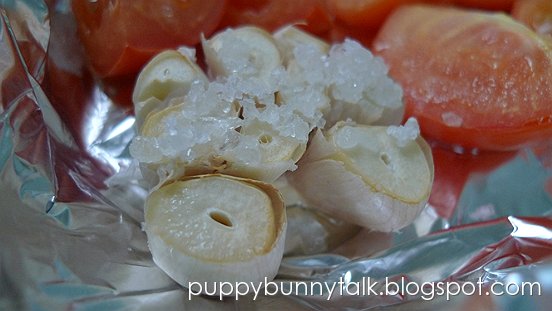 Then comes the tomato based sauce. I've recently discovered this way of prepping the tomatoes and garlic to give it a stronger and richer flavor. Roasted.